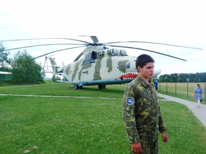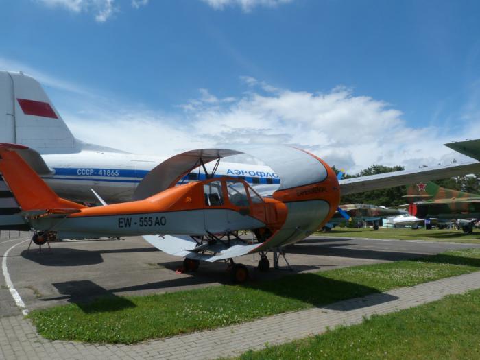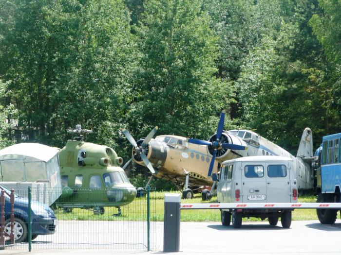 Заманчиво (в смысле, бесплатно посетить самопальную выставку автороскоши), но мы все же выбрали другую мишень, тоже недалеко от места нашего ночлега. Это при Минском аэроклубе. Клуб действующий, при нас там отмечали выпускной какие-то курсанты, кто-то договаривался о полетах или прыжках с парашютом. За оградой музея — как действующие, так и полуразобранные самолеты и вертолеты.