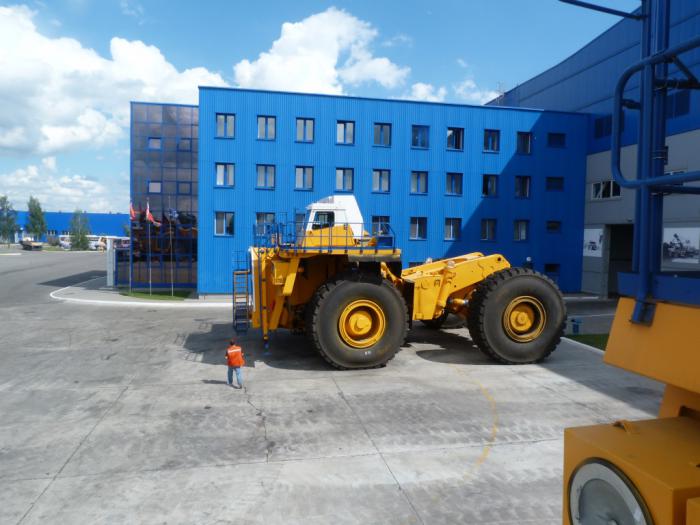 Тем не менее, всю коллекцию мы осмотреть не успели. Надо было спешить к нашему следующему пункту. На него меня навел отчет некоей девушки о поездке с молодым человеком по Беларуси, опубликованный на этом сайте (почему-то не могу его найти сейчас). Отчет был пустенький, подвергся суровой критике завсегдатаев сайта, но вот ведь — навел меня на мысль посетить с экскурсией завод, где производят огромные БЕЛАЗы. Написал email, получил ответ, забронировал время. И мы помчались из аэроклуба в Жодино, где раскинулись цеха этого промышленного гиганта.