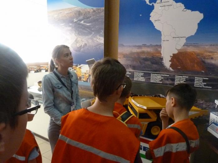 Навигаторы повели наши две машины двумя разными дорогами. То ли наша оказалась чуть быстрее, то ли мы просто более наглые в обгонах, но примчались на место мы первыми. Экскурсионная группа уже ушла, но нам сказали, что если отставшие подойдут скоро, то за нами выйдут и позволят присоединиться к экскурсии. Вскоре примчались взмыленные родственники, и уже все вместе мы зашли в помещение, где как раз на большом экране шли заключительные титры фильма о БЕЛАЗах и их использовании по всему миру.