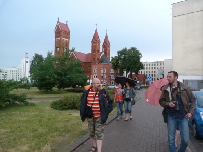 Проехав чуть-чуть на метро, мы (переждав ливень) вышли уже совсем в центре города, у Красного костела.