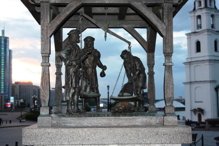 Тут же на площади установлен памятник Магдебургскому праву, полученному Минском в 1499 году. Тоже свобода, своего рода: право иметь, среди прочего, собственные городские весы.