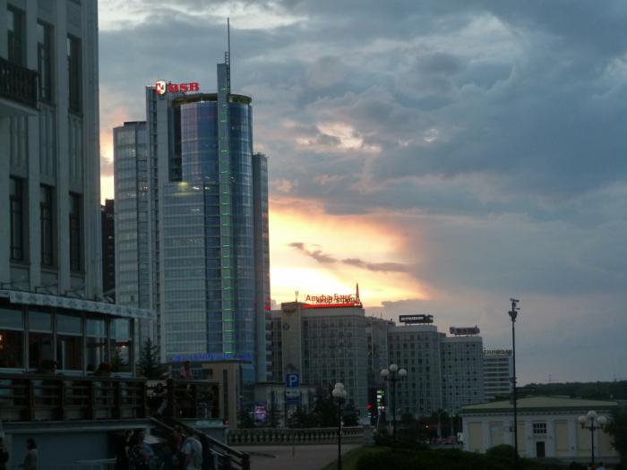 Спускаясь, наш Зьмитер спросил охранника, правда ли в народе говорят, что под гостиницей плывун, и ее фундамент приходится постоянно замораживать, чтобы не рухнула? На что тот возмущенно ответил: «Да вы что! Это вы, наверное, с Национальной библиотекой перепутали!». =) Из чего мы поняли, что конкуренция между этими смотровыми носит весьма ожесточенный характер.