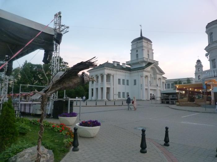 Зьмитер, который и сам мог бы послужить местной достопримечательностью, охотно дает пояснения, рассказывая, что где раньше было. Например, это вот сейчас Русский государственный драматический театр: