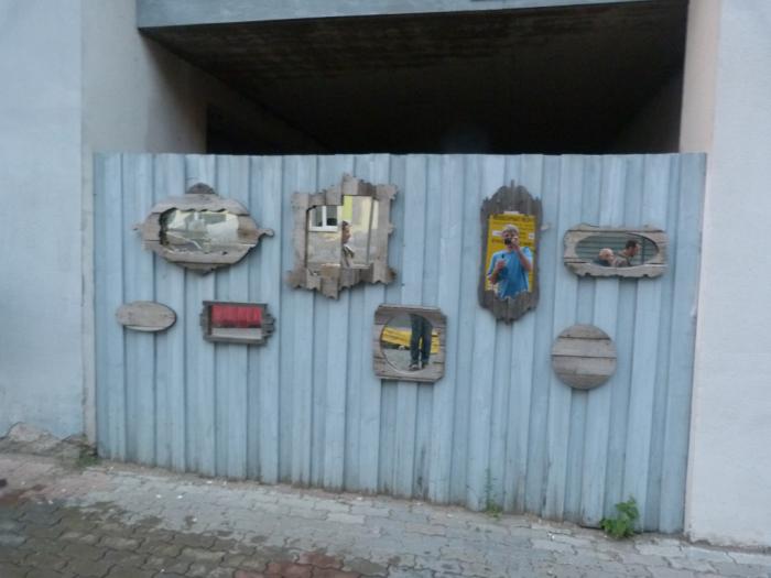 Совсем уж безудержный креатив мы обнаружили чуть дальше, ближе к набережной. Вот там почти никто из нашей компании не удержался от того, чтобы засунуть голову в непонятную ловушку для туристов: