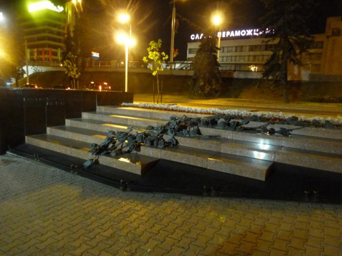 Напоследок, перед тем как нырнуть в метро, увидели еще памятник недавней трагедии, унесшей жизни множества людей. Тогда, в 1999 году, сильнейший ливень заставил сотни минчан искать убежища в подземном переходе, не рассчитанном на такую толпу. В сочетании с паникой это привело к гибели 53 человек, в основном, подростков. :(