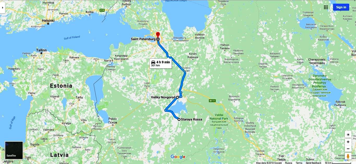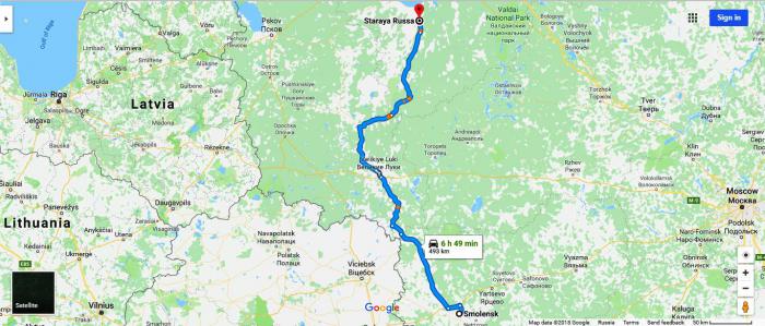Между тем, в 335 км от Смоленска, мы покидаем шоссе М9 и сворачиваем по указателю на Старую Руссу. Тут должна звучать зловещая музыка, но поскольку у нас не кино, обойдемся лучшим другом искателя приключений — навигатором. По-моему, тоже вполне зловеще получилось: