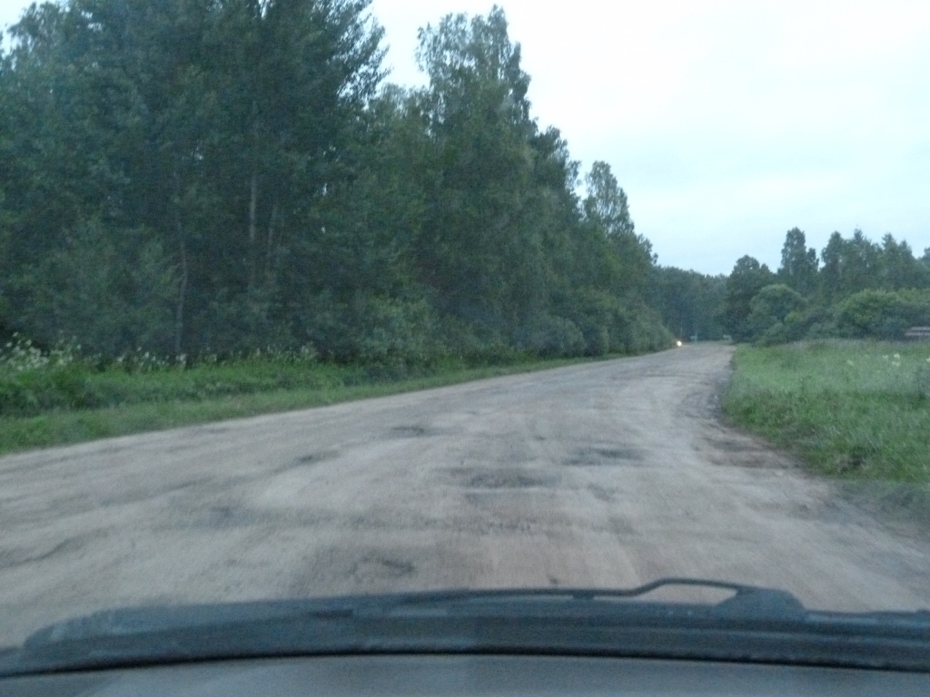 Дела у них были… интересно. Когда нам говорили, что по платной дороге — большой крюк (но покрытие более качественное), речь шла о варианте проезда до конца этой самой платной трассы, чтобы уже оттуда свернуть к Великим Лукам. Другие варианты кассирам, с которыми мы беседовали, даже в голову не пришли. А вот навигатору — пришли. Он был категорически против такого крюка. Поэтому посередине платной дороги навигатор громко сказал: «Псс! Я знаю короткую дорогу прямо к цели.» И приключения, как обычно, не заставили себя ждать.
