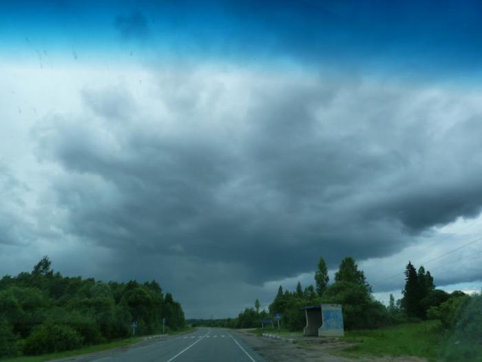 Но вскоре они снова сменяются отличным шоссе, позволяющим водителю отвлекаться на окрестные пейзажи и фотогеничные тучки на небе.