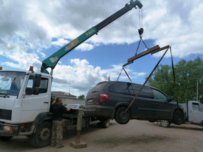 Машина у меня для эвакуации крайне неудобна. Мало того, что тяжеленная, так еще и трос цеплять ни сзади, ни спереди не к чему. По счастью, наш эвакуаторщик был обучен отправлять автомобили в полет…