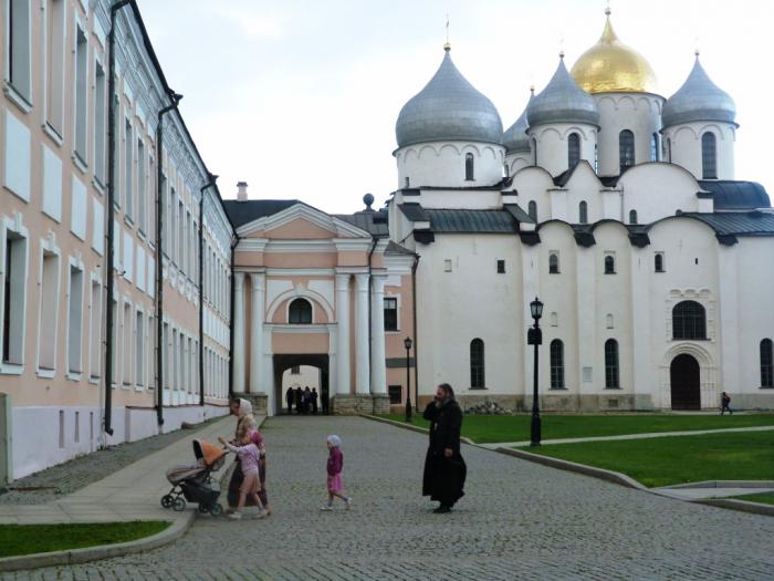 Под аккомпанемент ее рассказов, мы прогулялись между отлично отреставрированными древними соборами новгородского кремля…