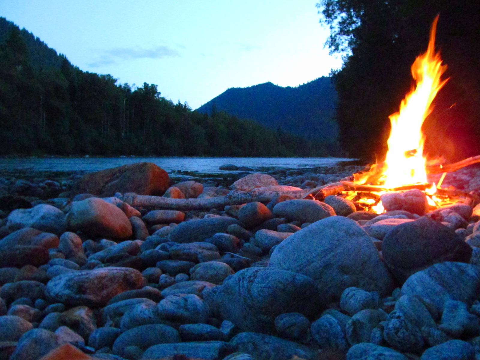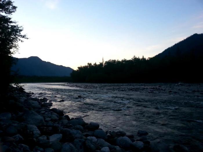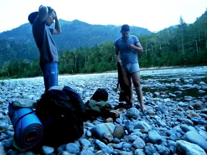 Оказалось течение слишком сильное для таких маневров, а крупные камни на дне не позволяют устойчиво стоять без специальной обуви. Опасно, одним словом, для неподготовленных. Мы решили переночевать на этом берегу и утром решить, что делать. Утро вечера мудренее. Может мужик на лодке приплывет, кто знает. Вся человеческая мудрость заключается в двух словах: ждать и надеяться! Как говорил Граф Монте-Кристо.