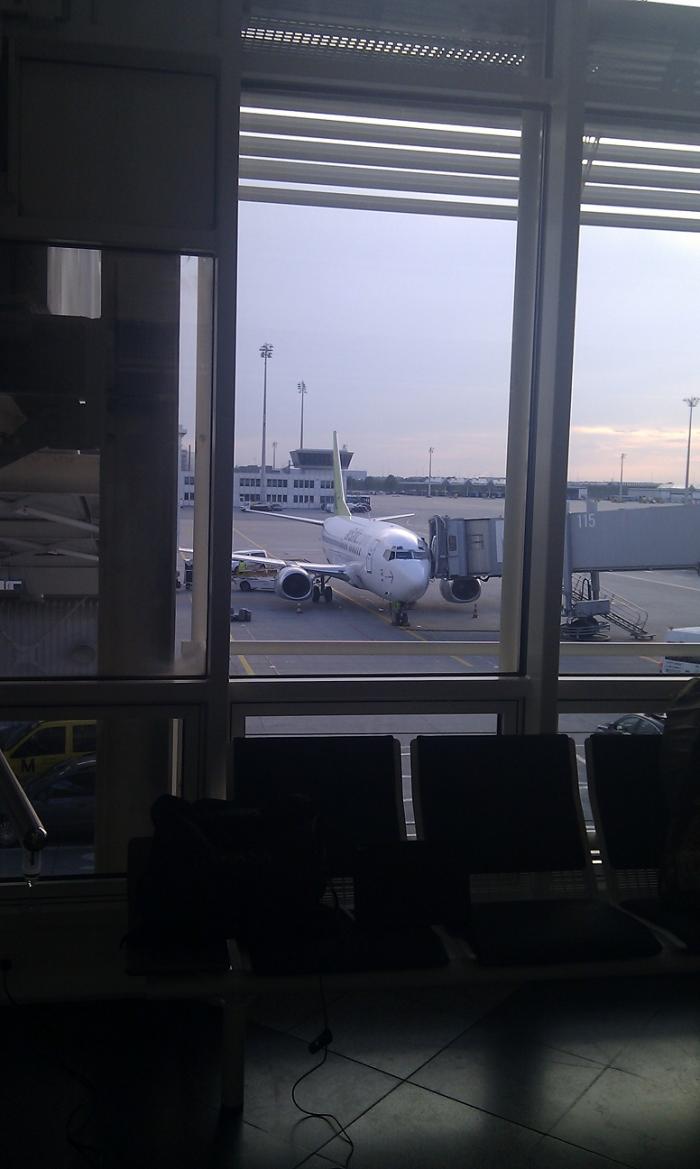 Аэропорт Мюнхена куда крупнее вокзала, нашел схему, на ней нашел терминал указанный в моей распечатке электронного билета и неспеша отправился (времени еще много). На середине пути стало понятно что я переоценил свои возможности и недооценил размеры аэропорта — надо пользоваться травалаторами, а не гордо топать рядом:) Затем встала новая задача — надо ли регистрировать мои билеты и если да, то где?! Пошарахался среди электронных автоматов регистрации крупных авиакомпаний, потом нашел стойки с персоналом вообщем обошел пожалуй весь терминал, но так и не нашел где мои балтийские авиалинии?! Девушки за стойками других компаний все же уточнили что регистрировать билет будут при посадке, и моей распечатки достаточно. Время ожидания коротал лазая в инете под бесплатным WiFi. Потом прилетел 737 боинг (крохотный) не первой свежести, оперативно погрузившись мы вырулили на полосу и полетели точно по расписанию… Самолет набирал высоту очень круто да и остальные маневры совершал довольно резко, часто ощутимо трясло, посадку и вовсе осуществляли по ступенчатой траектории со смачным ударом об полосу:) именно так и произошел в моей жизни первый полет! не какойнить Москва-Самара, а Мюнхен-Рига!:)