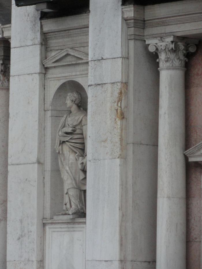 За прошедшие столетия он многократно достраивался и переделывался. Современный фасад, украшенный колоннами и статуями, собор получил в 16-м веке.