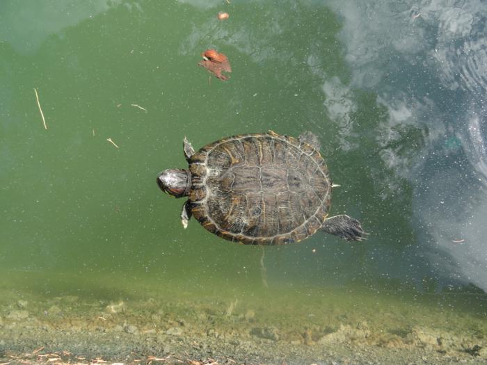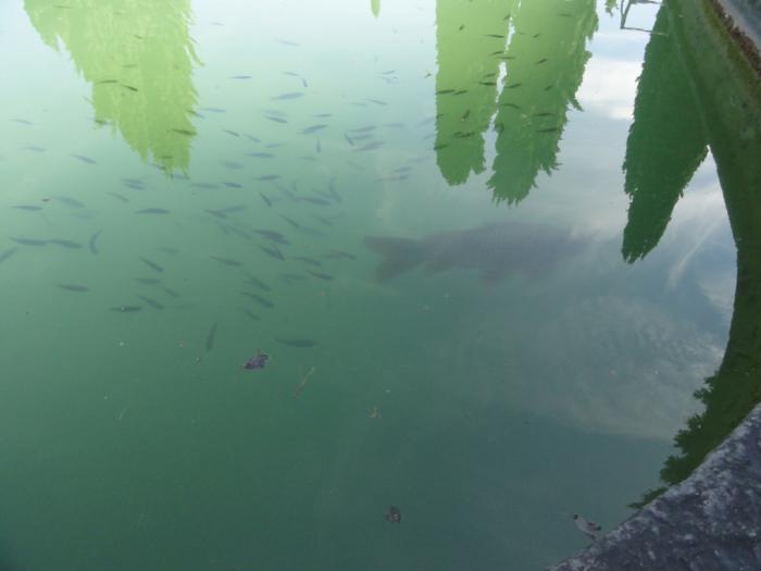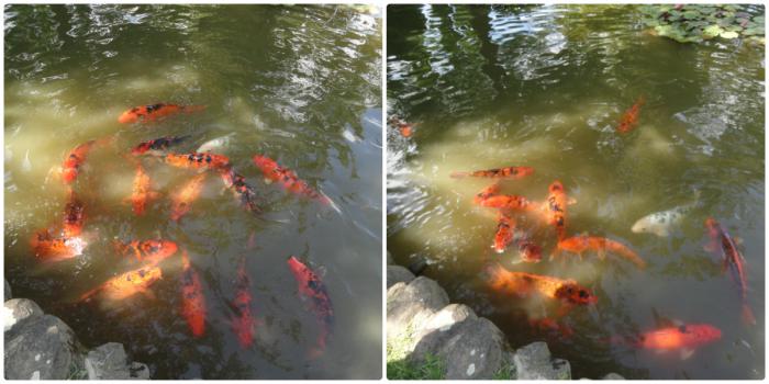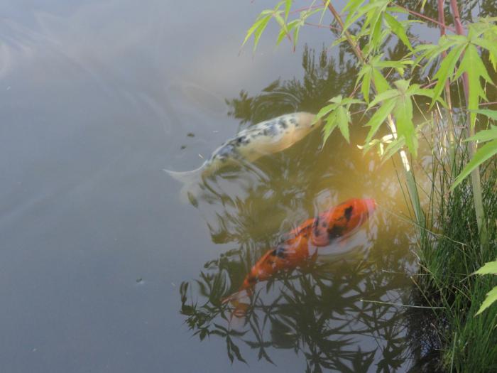 …в котором плавают «золотые рыбки» размером с хорошую атлантическую селедку (на самом деле это карпы кои):