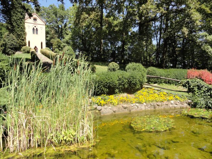 60 гектаров нетипичного для Италии «английского» парка (когда природа по максимуму сохраняется в неизменном виде): кусочки леса, просторные поляны, лабиринты дорожек и тропинок, цветники, пруды и бассейны с рыбками и черепашками…