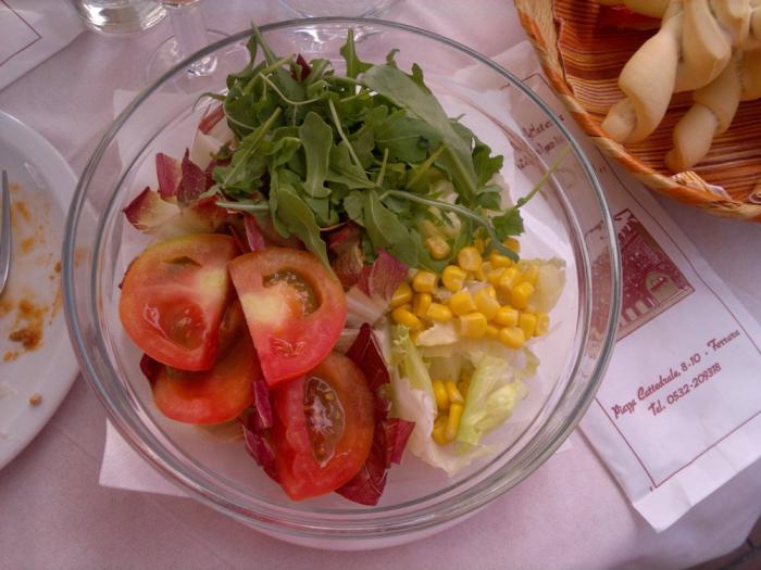 А это местный вариант подачи зеленого салата. Стиль «минимализм» или «салат-конструктор»: