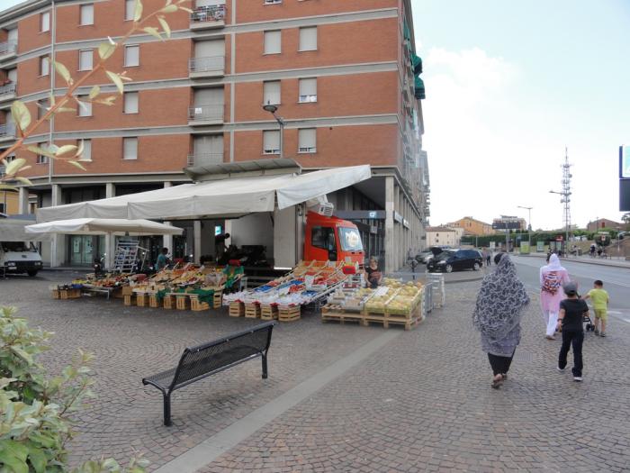 В Италии очень распространены такие грузовики с тентами. В сложенном виде тент умещается на верху кузова, а в разложенном – прикрывает от солнца очень приличную площадь. Торгуют, как правило, афро- и арабо-итальянцы.
