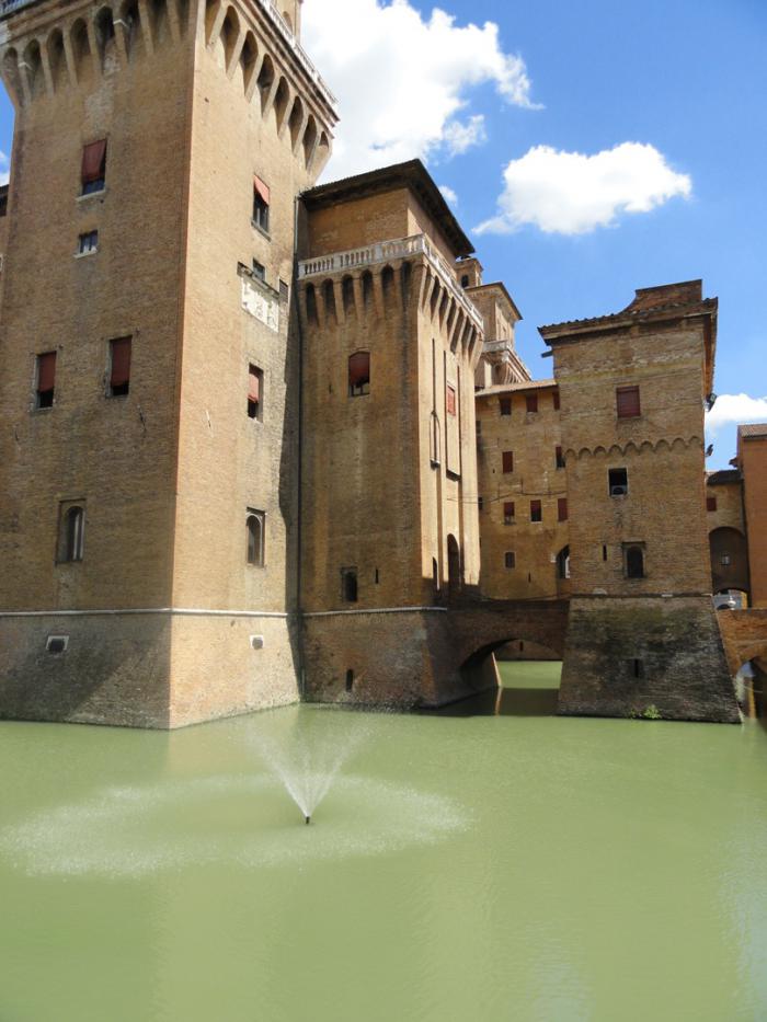 Замок герцогов д’Эсте (Castello Estense) — символ Феррары. Построен в 15-м веке как резиденция правителей Феррары. В отличие от других крепостей, служил защитой не от внешнего врага, а от жителей собственного города. Считается первой в Италии правительственной резиденцией, защищенной пушками.