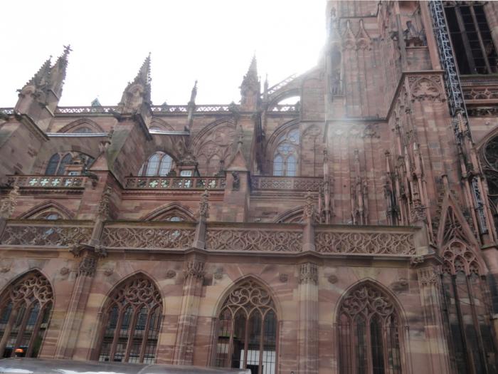 Страсбургский собор – один из величайших христианских соборов в мире. Строительство начато в 11-м веке, закончено только в 15-м. Возведен из красного песчаника, благодаря чему здание выглядит еще массивнее. Вдобавок этот камень не впитывает грязь так, как традиционно использовавшийся в Средневековье светлый песчаник, поэтому стены со временем почти не темнеют.
