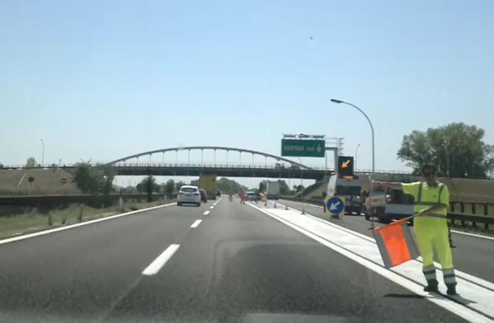 После Римини автострада, если смотреть по карте, идет практически вдоль моря, местами до него меньше километра. Но моря с нее не видно: то шумозащитный забор, то кусты, то какие-то холмы. Хотя, наверное, это и к лучшему: не так тягостно ехать тут, когда хочется купаться там.