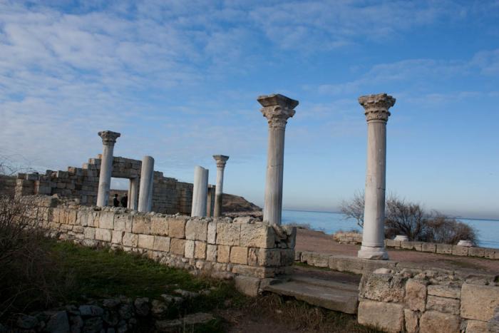 С утра едем в Херсонес – это древние развалины, старое городище, занимает площадь более 40 гектаров (2 гривн билет). Бродим по этим древностям, погода изумительная, градусов 10, ветра нет, море спокойное.