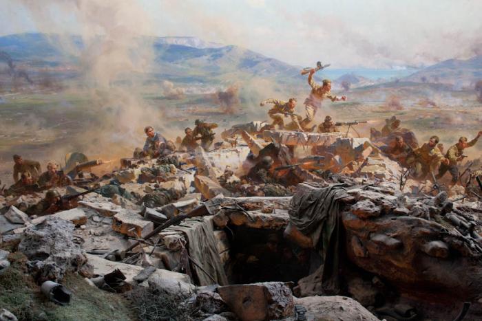 На выезде из города идем на Сапун-гору. Здесь находится самая большая в мире диарама (панорама +предметный план) «Штурм Сапун-горы» (экскурсия 30 гривн). Экскурсия длится 10 минут и несколько разочаровывает. На кургане кроме этого множество военной техники – нашей и немецкой. Никак не можем увести Сашу.