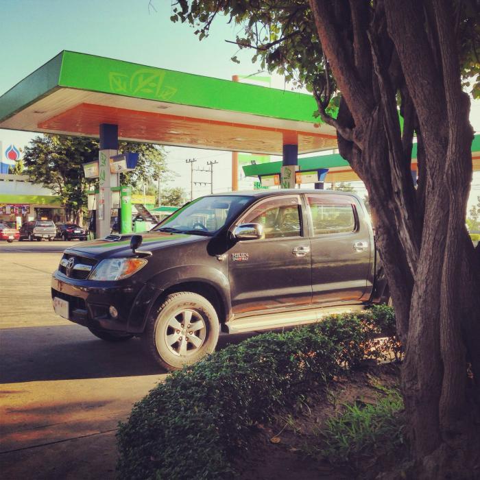 Дизельное топливо стоит от 29.90 до 31.00 бат за литр, бензин стоит от 36 бат за литр.