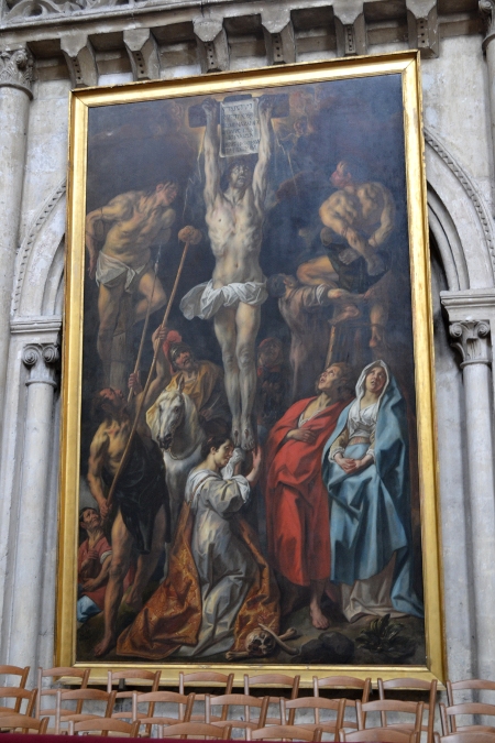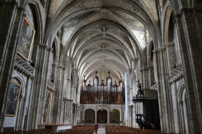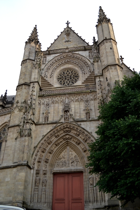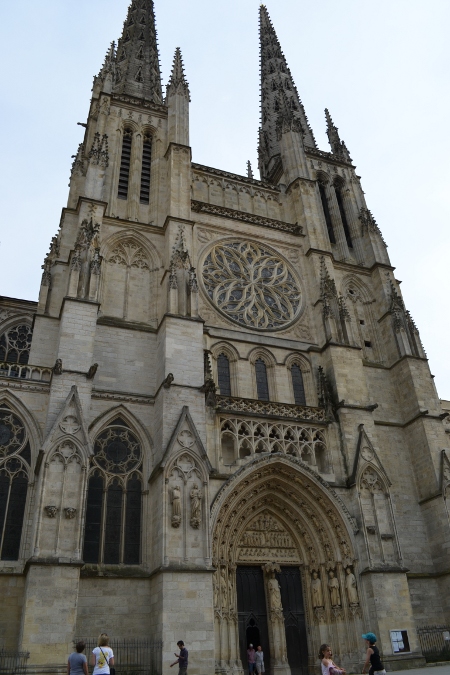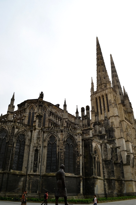 И вот мы у собора. Он, конечно, грандиозен, является самой красивой церковью Бордо, и объектив фотоаппарата никак не его не мог охватить. Этот собор в течении первых пятисот лет своего существования постоянно перестраивался, потому создается впечатление какой-то неоднородности. Поразило опять то, что сам главный собор и колокольня от черноты очищены, а более низкие, но красивые строения — нет.