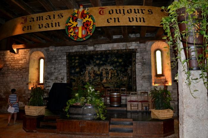 В процессе подготовки мы искали какое-нибудь посещение с дегустацией, например, рассматривали Винный дом «Бушар и сыновья», который находится в замке Бон в одноименном городе, опять же и горчичка рядом. Но один билет ориентировочно стоит 100 евро. Поэтому обратили свое внимание на замок Кло-де-Вужо. Дегустации там нет, но посмотреть на старинное оборудование вполне можно. Билет стоит 5 евро, народу вообще никого. Зато дают описание экскурсии на русском языке.