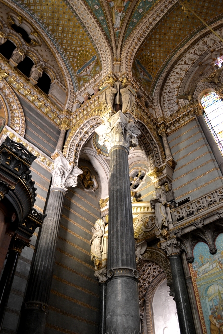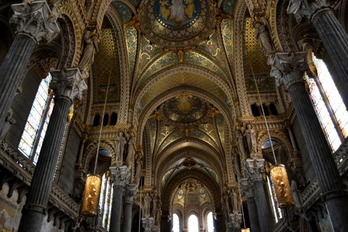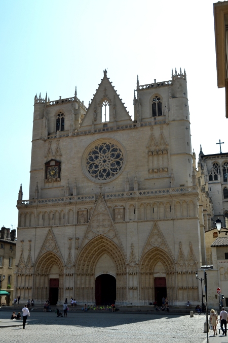 «Кафедральный собор святого Иоанна Крестителя возвышается над берегом Соны в Старом городе, в нескольких шагах от моста Бонапарт. Суровое здание, напоминающее замок Синей Бороды (героя сказки Шарля Перро), как нельзя лучше подходит к узким средневековым улицам квартала. Выполненное в смешанном романо-готическом стиле, оно уже почти тысячу лет служит главным храмом Лиона.» — так описывается он в одном их путеводителей. Я таких ощущений не получила. Собор как собор и вовсе не мрачный.