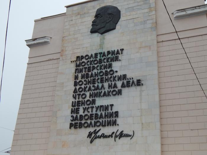 Ленин правой рукой указывает на торговый центр, но на сегодня шоппинга хватит. Кинешма — город любви и вывесок с неизвестными городами.