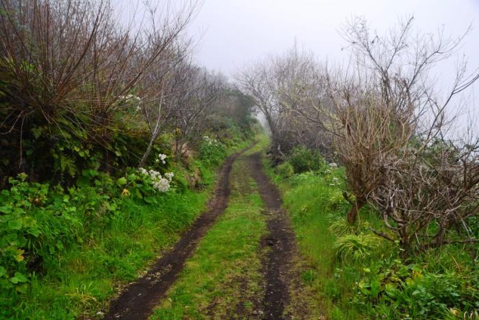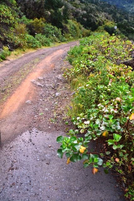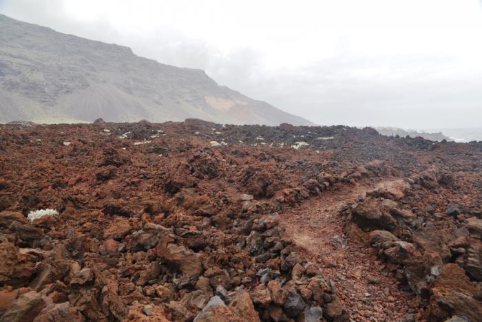 Пешеходная тропа здесь знатная – расчищенная от кусков лавы, которые острыми краями обрамляют дорожку. Кстати говоря, иеррские тропы не терпят никакой открытой обуви, в сандаликах здесь не побегаешь, так что кроссовки мы не снимали, несмотря на случавшуюся время от времени жару, и даже умудрились порвать неубиваемые с виду обувки.