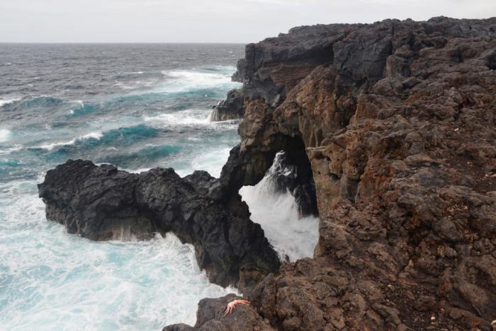 Кстати говоря, к арке можно и не идти через все побережье, а остановиться на Hi-551 возле указателя на Arco de la Tosca и в течение десяти-пятнадцати минут добраться до этого чуда природы (а если вы разорились на внедорожник, возможно, удастся доехать до самой арки). Мы, кстати, так и сделали, решив посмотреть на арку еще раз – при солнечном свете.