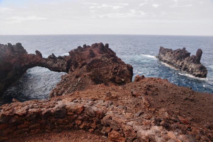 А все потому, что как все и побережья Эль Йерро, Punta de la Dehesa /Пунта-де-ла-Дехеса возникло в результате вулканической активности. Горячая лава текла к побережью и через некоторое время остывала. В результате образовались причудливые скальные образования. Многочисленные языки лавы, уходящие в океан, здесь образуют арки, колонны, мостики…