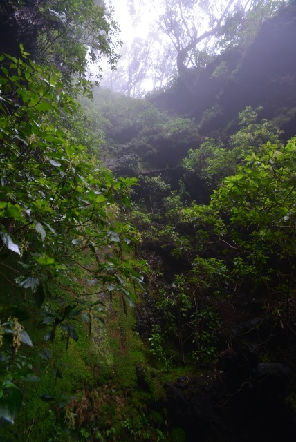 Здесь очень сыро, приходится продвигаться в густом тумане – это облака. Влага конденсируется на можжевеловых лапах и блестящих лавровых листьях.