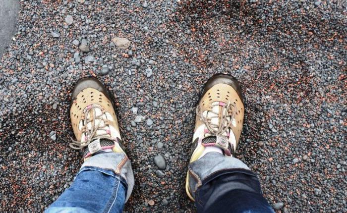 Купались на Веродале дважды, вода в марте довольно прохладная, но вполне терпимая – с учетом ее солености. Градусов так 18-19, не больше. К сожалению, наши пляжные удовольствия прекратились внезапно по причине коварства Веродаля: один из нас (не скажу кто, но это был слоненок) наткнулся на острый кусок лавы под тонким слоем песка, как результат – довольно неприятная рана на большом пальце ноги. Зато теперь я – автор лайфхака: если у вас кровища хлещет из пальца, чтобы доехать до цивилизации на него надо надеть пустую упаковку из-под бумажных платочков.