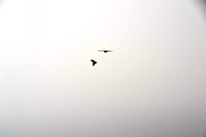 Надо отдать должное Hi-500: после серпантина дорога становится вполне прямой. Ехать по ней – сплошное удовольствие: в лучшем случае, встретится навстречу одна машина, а так – пустота вокруг, только птицы носятся. Птицы здесь особенные: огромные черные вороны, мелкие хищники типа соколов и пешеходные вроде как перепелки. Самые наглые здесь – вороны: сами видели, как они соколов гоняли (те меньше воронов чуть ли не на треть).