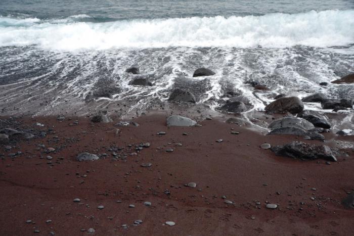 Бенихо на Тенерифе, вот только на Бенихо песок черный и мелкий, а на Веродале – крупный и красный.