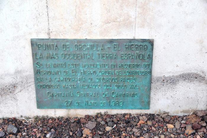 И вот мы возле бетонного монумента, призванного напомнить, что вплоть до XX века многими европейскими картографами Иерро использовался как точка отсчёта при определении географической долготы (Меридиан Ферро).
