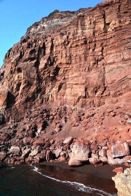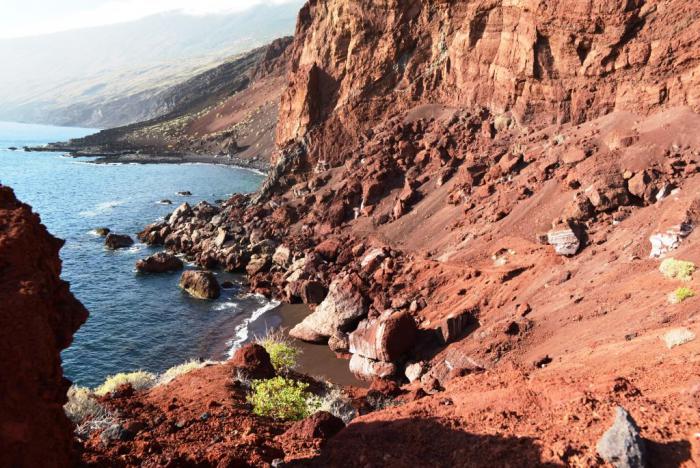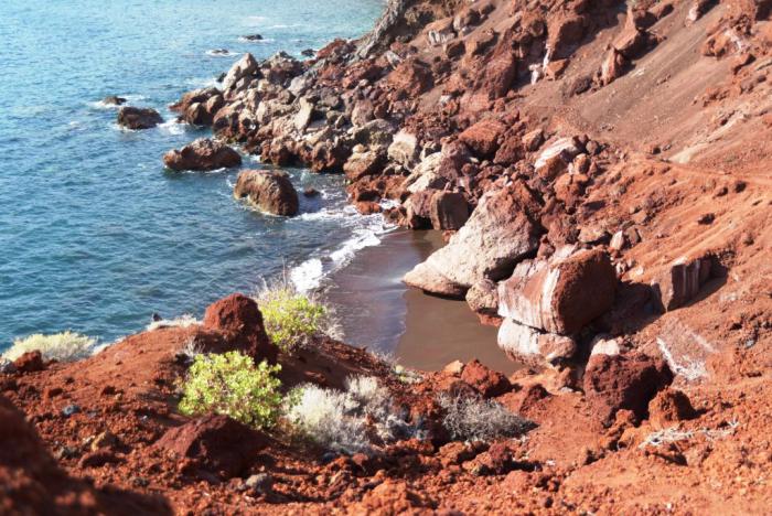 Вокруг пляжа красивые горы красного цвета, очередные затеи матушки-природы по части заваривания каменной каши.
