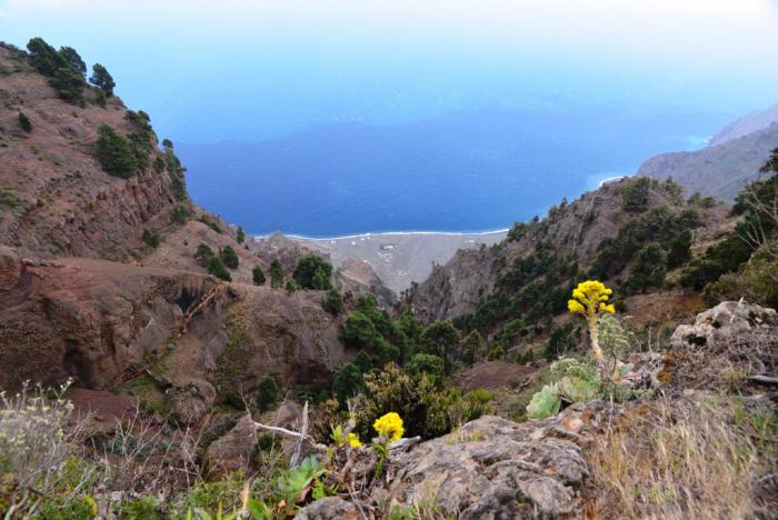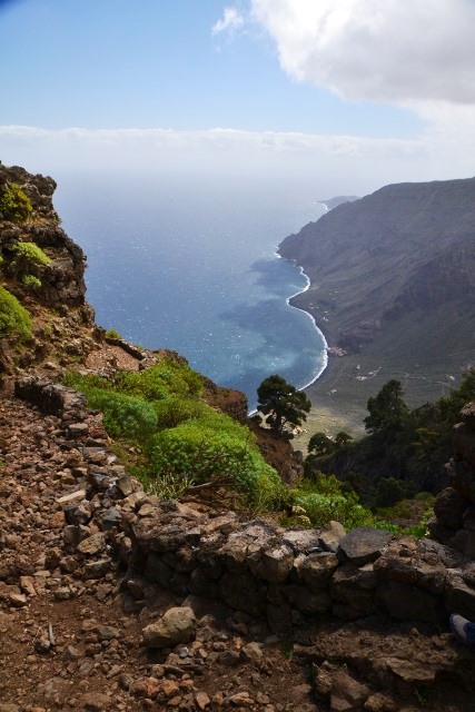 Вот здесь мы немного пожалели, что нас никто не встречает внизу на машине: с мирадора Исора вниз к самому побережью идет пятикилометровая пешеходная тропа, можно за пару часов прогуляться по склонам и насладится постоянно меняющимися видами океана и берегов острова.