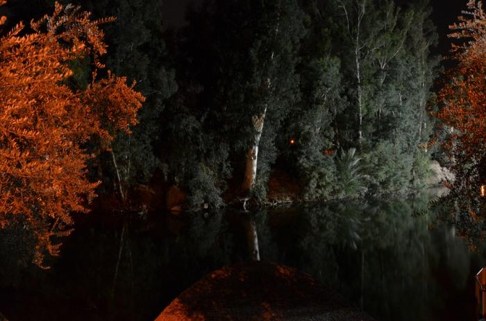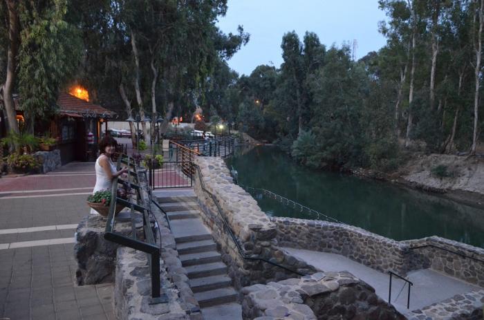 Конечно же, в это время уже всё было закрыто (время работы в пятницу — до 17 часов), но мы без особого труда смогли просочиться через небольшое ограждение и спуститься к реке Иордан, к месту, где св. Иоанн Предтеча крестил Иисуса Христа. Без белых одежд, но с чисто белой душой мы проделали небольшой крестный ход по специально устроенному руслу в полной тишине и при полном отсутствии кого-либо.