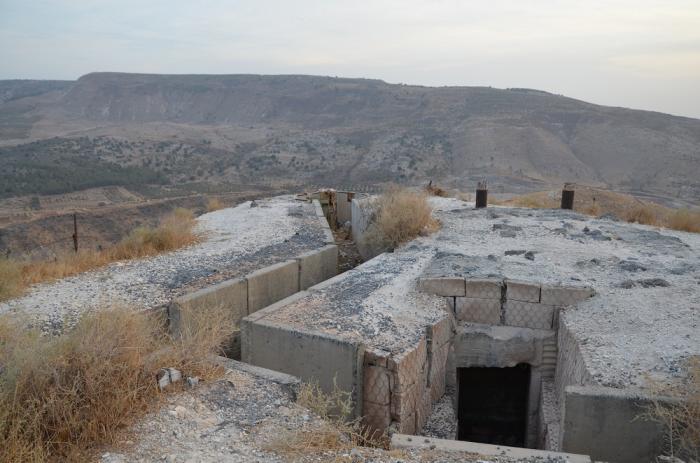 Обратите внимание на 3 верхних фото. По ту сторону дороги уже территория Сирийского государства. Все 3 фотографии сделаны с военного укрепления Израиля на границе с Сирией. На момент нашего приезда там никого не было, скорее всего сейчас эти укрепления не используются. Однако, если внимательно присмотреться к фотографиям, то можно увидеть ограждение из колючей проволоки, а на первом фото еще и табличку с надписью «Осторожно, мины». Поверьте на слово, за ограждения лучше не заступать, несмотря на то, что здесь нет военных.