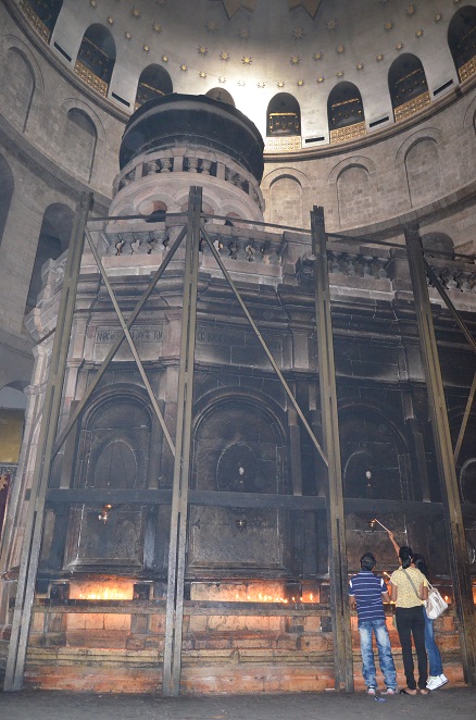 Строительство храма Гроба Господня датируется 335 г. н.э. и связано с именем Великого Императора Константина и его матерью Еленой. Правда не совсем понятно, почему строительство храма производилось именно на этом месте, хотя вроде как и нет оснований усомниться в том, что храм Гроба Господня является именно тем местом, где, согласно Священному Писанию, был распят, погребён, а затем воскрес Иисус Христос.