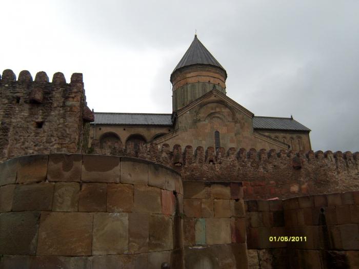 Сразу по пути заехали в Мцхету — первая столица Грузии, Светицховели XI в. Прямо на территории есть туристический инфоцентр, где нам выдали карты Грузии и рассказали где и что нужно посмотреть. Таких центров много, мы еще видели в Боржоми, Гори, Тбилиси, Сигнахи…