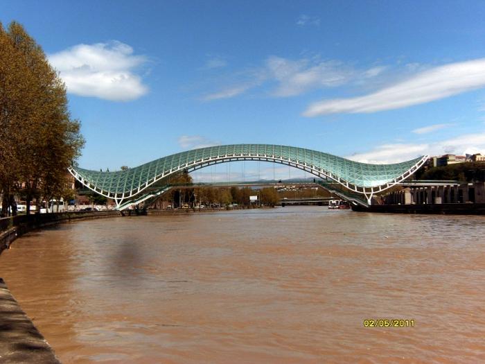 Т.к. за день до этого были сильные дожди, то уровень Куры сильно поднялся, иногда перехлестывал на тротуары.