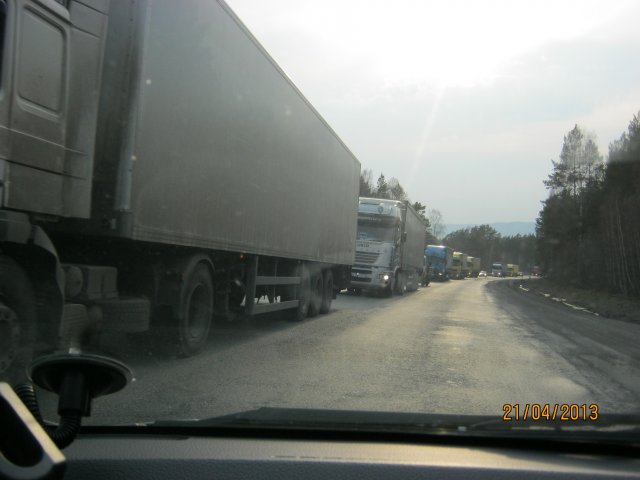 На проход запускали Фуры, и только, разрядив их ряд, пропустили легковушки. С казахского поста я съехал через 18 минут. На Российской зоне, торможение. Паспортный контроль вынесен прямо между транспортными рядами, где обычно только таможня. Все, автомобилисты кинулись на регистрацию, как всегда, по российски! Моя машина стояла первой и никто не мог её объехать, пока не пройду контроль, о чем я предупредил бойкую очередь. Однако никто этого не переварил своими мозгами. Инстинкт первого в очереди, не позволил перешагнуть, через него. Что ж, подождали. А я ещё и не сильно спешил, видя как до них «дошло». Время прохода российской границы составило 1 час.