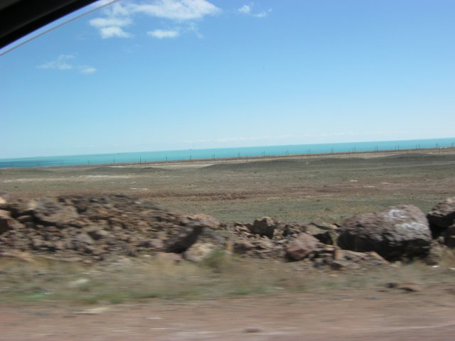 Подъезжая к Балхашу, встречаю «точки» продажи рыбы, а вот уже, справа, и сам Балхаш.