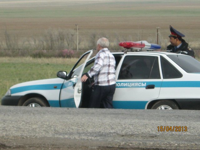 Эти заведения стоят, прижавшись, друг к другу, вдоль трассы, завораживая радугами огней, немыслимыми колоннадами, коваными заборами, призами – автомобилями, за выигрыши, рекламой…Изрядно уставшим уже не хотелось останавливаться для фотоснимков. После Копшагая дорога пошла лучше и я, увлекшись её надёжностью, потерял бдительность, что позволило появившемуся, невесть откуда, полицейскому, сбросить мой пыл. Был инкриминирован обгон параллельно идущей со мной, в одном направлении, легковой машины. Остановивший меня полицейский – казах, был добр и проводил меня к «старшему», сидевшему в патрульной машине. Того, что сидел в патрульке, я сразу узнал. Это был типичный и для российских дорог, красномордый, уверенный в своём предназначении, сержант. Он сразу стал имитировать спешное оформление документов о задержании. На мой вопрос о том, почему он считает, что я обгонял попутную машину, находясь в свободном ряду, он заявил, что изымает моё водительское удостоверение. Находящийся рядом, второй полицейский, стал объяснять сержанту, что я транзитный водитель и еду из самого Петербурга, видя мои питерские номера. Я достал своё регистрационное удостоверение с отметкой о заканчивающемся сроке пребывания в Республике Казахстан. Пять тысяч тенге, наличными, всё же решил вопрос о моей неправоте.