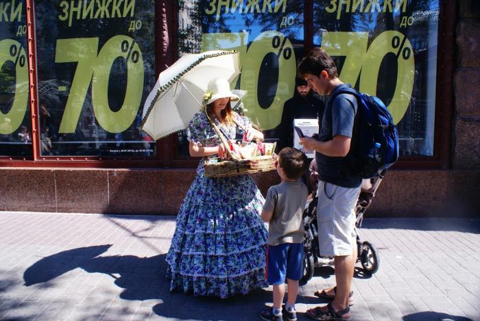 Весь следующий день мы гуляли по Киеву. Крещатик, как оказалось, пешеходный только по выходным, а мы гуляли в пятницу. Может поэтому были несильно впечатляны. Хотя мимы и барышни с леденцами нам понравились.